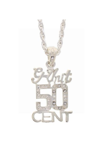 50 CENT SIGN SILVER PENDANT NECKLACE