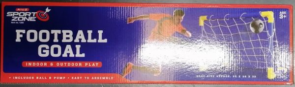 - Set contains: 1 x football goal, 1 x net, 1 x ball, 1 x pump, 1 x adapter