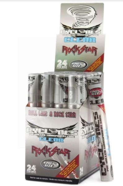 Cyclone Pre Rolled Clear Cone - Rockstar - King Size - Pack Of 24