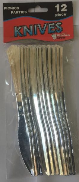 Silver Metal Look Disposable Plastic Knives - Pack Of 12