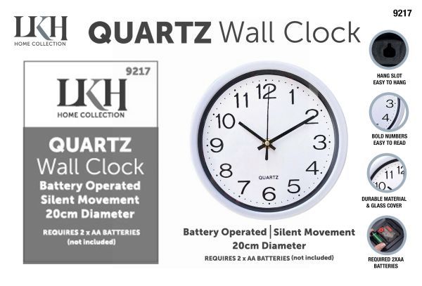 LKH Quartz Wall Clock - White - 20cm is available to buy in increments of 12