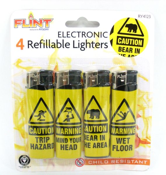 FLINT ELECTRONIC REFILLABLE LIGHTERS - CAUTION - PACK OF 4