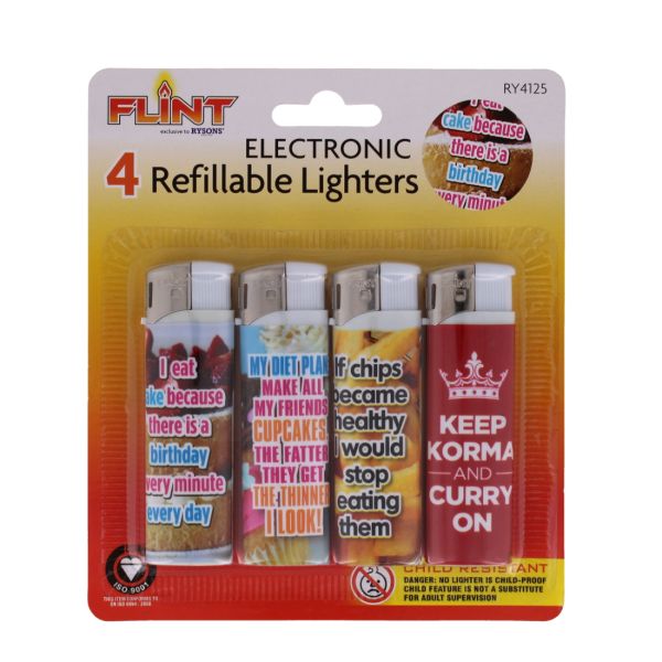 FLINT ELECTRONIC REFILLABLE LIGHTERS - FOOD QUOTE - PACK OF 4