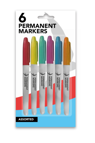 COLOURFUL PERMANENT MARKERS - ASSORTED - PACK OF 6