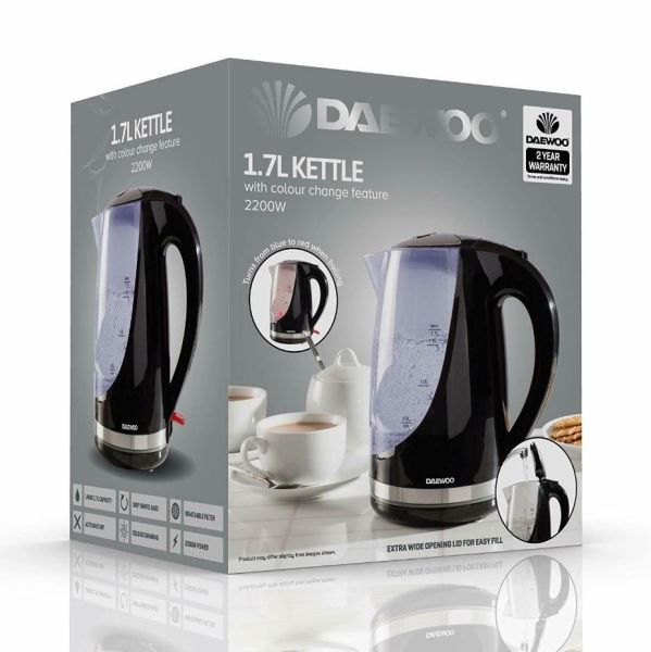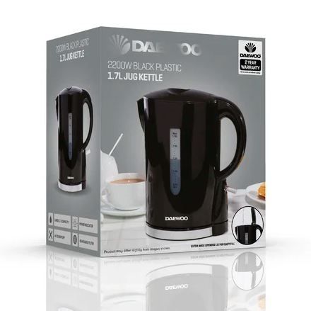 Daewoo 2200W Plastic Jug Kettle - Black - 1.7L - 23 x 20 x 14cm