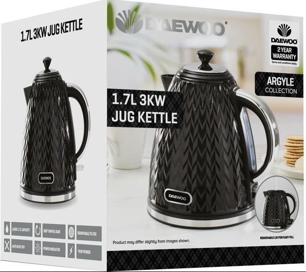 Daewoo 3000W Argyle Jug Kettle - Black - 1.7L - 21.5 x 20 x 23cm