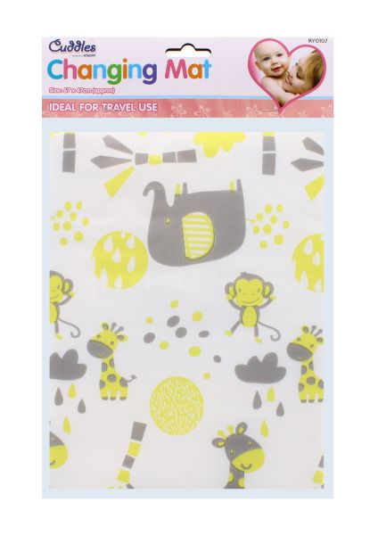 This Changing Mat by Cuddles exclusive to Rysons with a cute animal print design is great for protecting babies from being changed on unclean, cold surfaces and is ideal for travel use.
