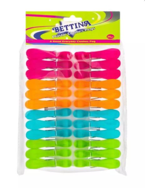 Bettina Plastic Clothes Pegs - Pack Of 24 - Assorted Colours