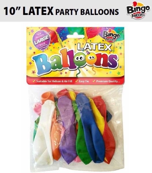 Bingo Traditional Large Latex Balloons - 10" - Pack of 16 - Assorted Colours