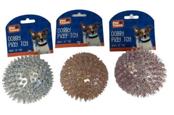 Pet Touch Squeaky & Flashing Ball - Doggy Play Toy - Assorted Colours - 6cm