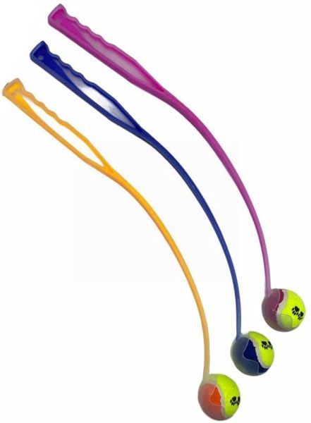 Pet Touch 2 Tone Doggy Ball Launcher & Ball Set - Assorted Colours - 49 x 9cm