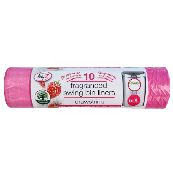 Tidyz Drawstring Fragranced Swing Bin Liners - Pink - 50 Litres - Pack of 10 - 120 x 74CM