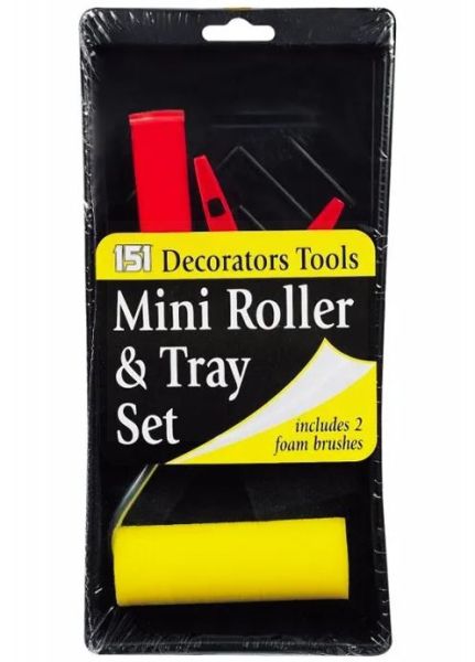 151 Decorators Tools - Mini Roller & Tray Set with 2 Foam Brushes