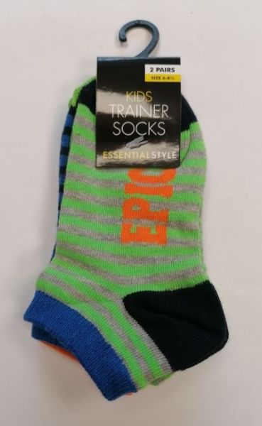 Essential Style Kids Trainer Socks - Assorted Pattern - Size: 6-8 1/2 - Pack of 2 Pairs