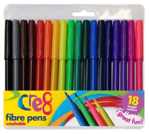 Colouring Fibre Felt Tip Pens - Pack Of 18