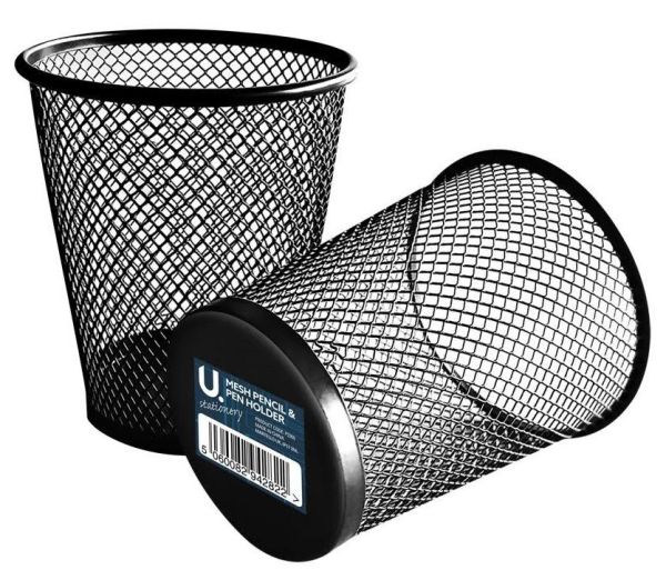 U Stationery Mesh Pencil & Pen Holder - Black - 10.5 x 9 x 6.5cm