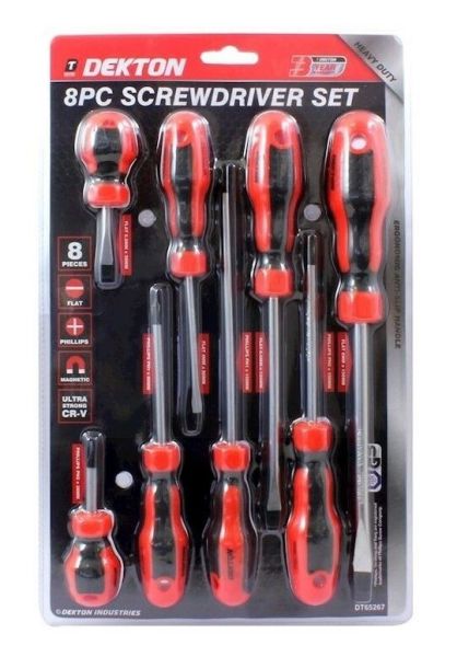 Dekton Heavy Duty Screwdriver Set with Ergonomic Anti-Slip Handles - Pack of 8