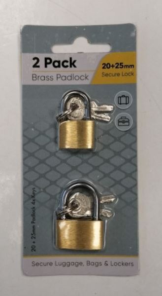 Secure Lock Brass Padlock Set - 20 + 25mm - Pack of 2 with 2 Keys Each