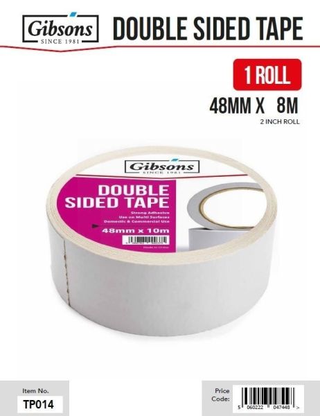 Gibsons High Strength Adhesive Double Sided Tape for Domestic & Commercial Use - 48mm x 8m