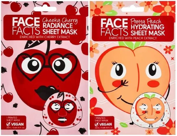 Face Facts Printed Sheet Mask - Pretty Peach & Cheeky Cherry - 20ml - EXP: 01/24