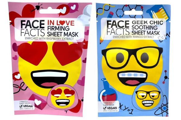 Face Facts Printed Sheet Mask - Emoji In Love & Geek Chic - 20ml - Exp: 03/24