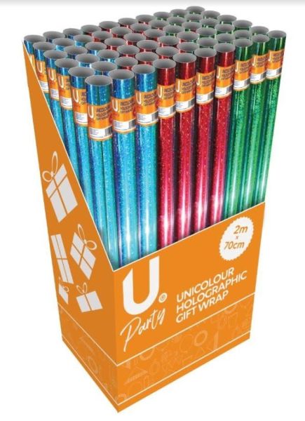 U Party Unicolour Holographic Gift Wrap - 2m x 70cm - Colours May Vary