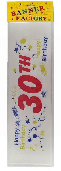 HAPPY 30TH BIRTHDAY BANNER WHITE W/CARD (100)