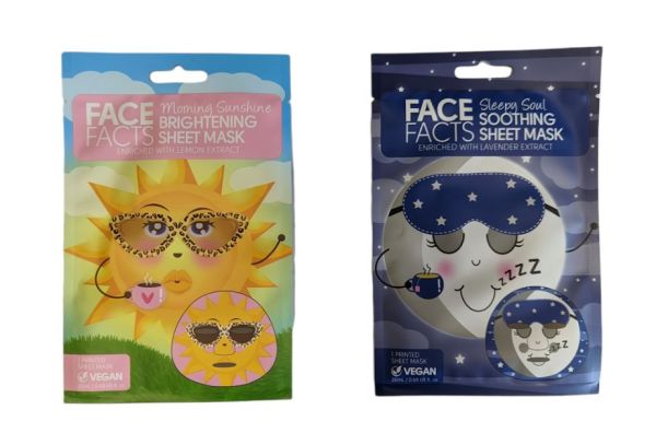 Face Facts Printed Sheet Masks - Morning Sunshine & Sleepy Soul - 20ml - EXP: 09/24