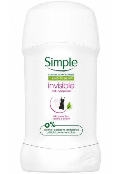 Simple Invisible 48h Anti-Perspirant Deo Stick - Vanilla & Peach - 0% Alcohol - 40ml*