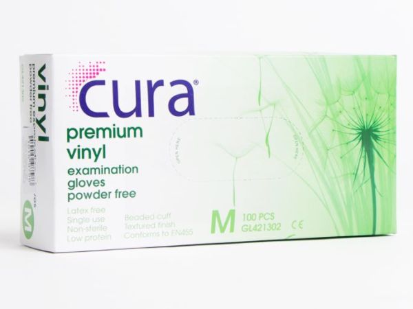 Cura Premium Vinyl Powder Free Examination Gloves - Medium - Pack of 100 - EXP: 09/25