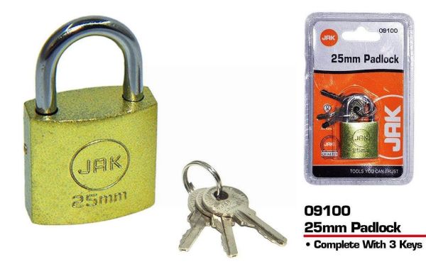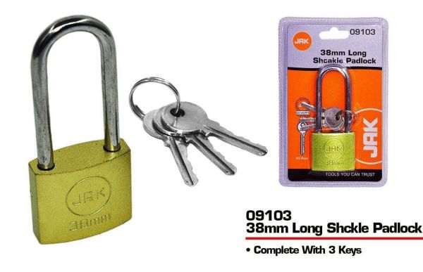 JAK Brass Long Shackle Padlock with 3 Keys - 50mm