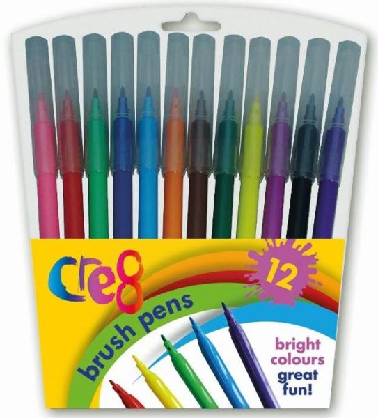 Cre8 Quality Fibre Brush Tipped Colouring Marker Pens - Pack Of 12
