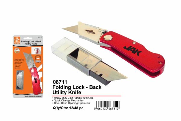JAK Folding Lock - Back Utility Knife with 6 Blades - Assorted Colours
