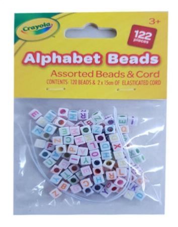 Crayola Alphabet Bracelets - Assorted Beads & Cord - Pack of 122 Pieces
