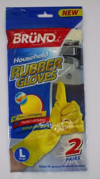 Bruno Quick Drying Household Rubber Gloves - Yellow - Pack of 2 Pairs - Large