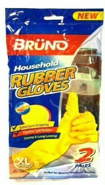 Bruno Quick Drying Household Rubber Gloves - Yellow - Pack of 2 Pairs - Extra Large