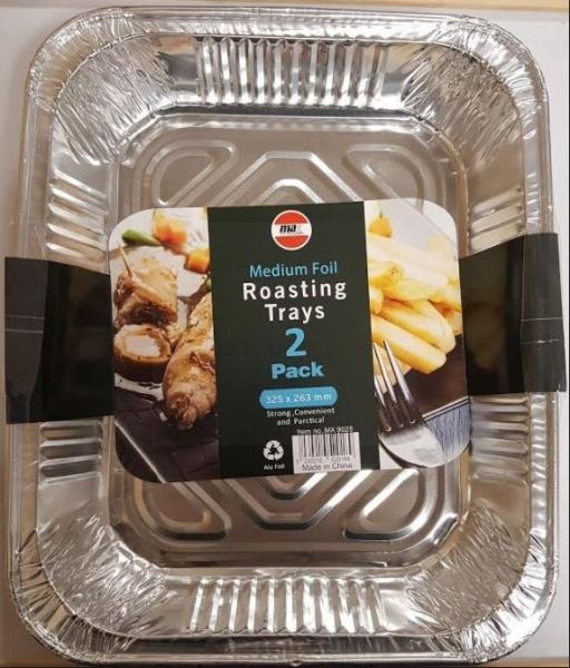 Aluminium Medium Foil Roasting Tray - 13" - Pack Of 2 - 32.5cm x 26.3cm x 6cm