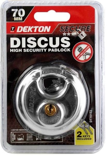 Dekton Heavy Duty Secure Discus High Security Padlock with 2 Keys - 70mm