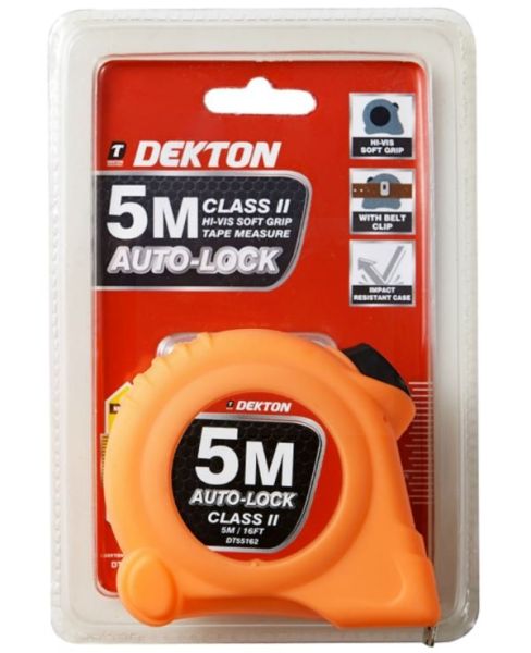 Dekton Class 2 HI-VIS Soft Grip Auto-Lock Tape Measure with Belt Clip - Orange - 5m