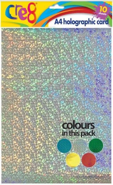Cre8 A4 Holographic Card - Pack of 10 - Assorted Colours