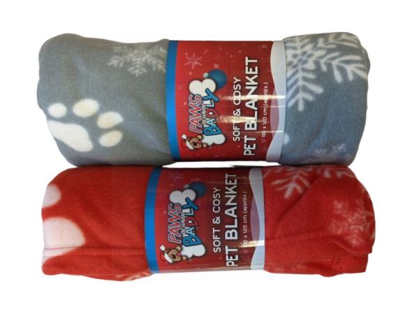 Paws Behavin' Badly Christmas Soft And Cosy Pet Blanket - Red/White & Grey/White - 100Cm X 120Cm