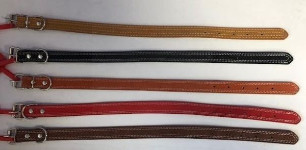 Padded Leather Stitched Dog Collar - 1.5cm x 40cm Approx - Colours May Vary