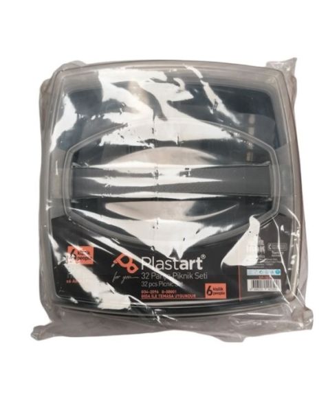 Plastart 32 Pcs Picnic Set with Spoons, Forks, Knives, Plates, and Cups - 26 x 26 x 12cm