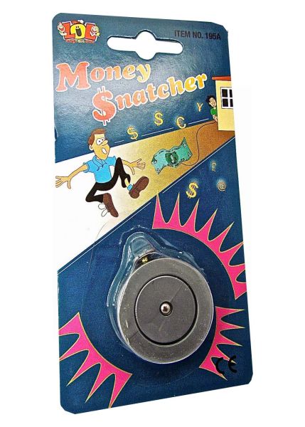 This is the Classic Money Snatcher Gag. Watch as people try and grab the money that you have at the end of your line. Phone money included or you can use real money for a better chance at fooling. This is the Classic Money Snatcher Gag! Just attach the phone money to the end of the line. Let the line out and stand back and watch greedy unsuspecting victims try and grab it! It's a bit like fishing, only the bait works on land and attracts much larger bites than minnows and trout. Unwind the near-invisible thread and attach a note to the end, then just leave it in plain sight whilst you hold this sneaky gadget in your hand. Release the button just as a tempted hand reaches out to grab the note and the money will be snatched back into your hand, leaving the money chaser slightly confused and out of luck.