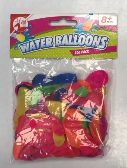 Red Deer Toys Water Balloons - Assorted Colours - Pack of 100 - 16 x 12cm