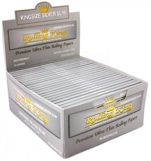 Rolling King Premium Ultra Thin Rolling Papers - King Size Silver Slim - Pack of 50