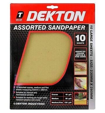 Dekton Large Sandpaper Sheets - Assorted Sheets - 230 x 280mm - Pack of 10