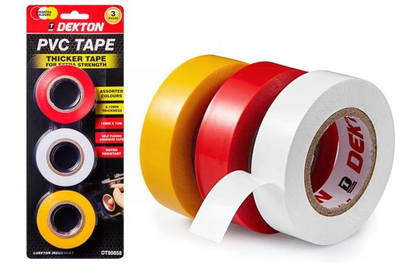 Dekton PVC Self Fusing Adhesive Tape for Extra Strength - Assorted Colours - 13M - Pack of 3