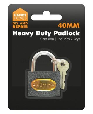 Large Size Heavy Duty Cast Iron Padlocks Including 2 Keys - 40mm