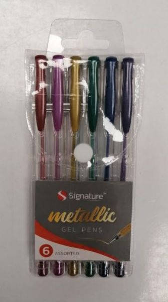 Signature Metallic Gel Pens - Assorted Colours - Pack of 6